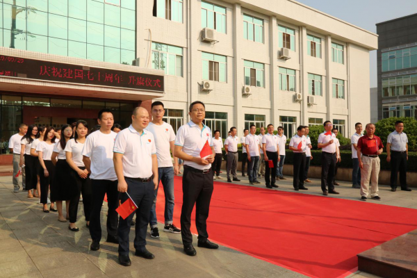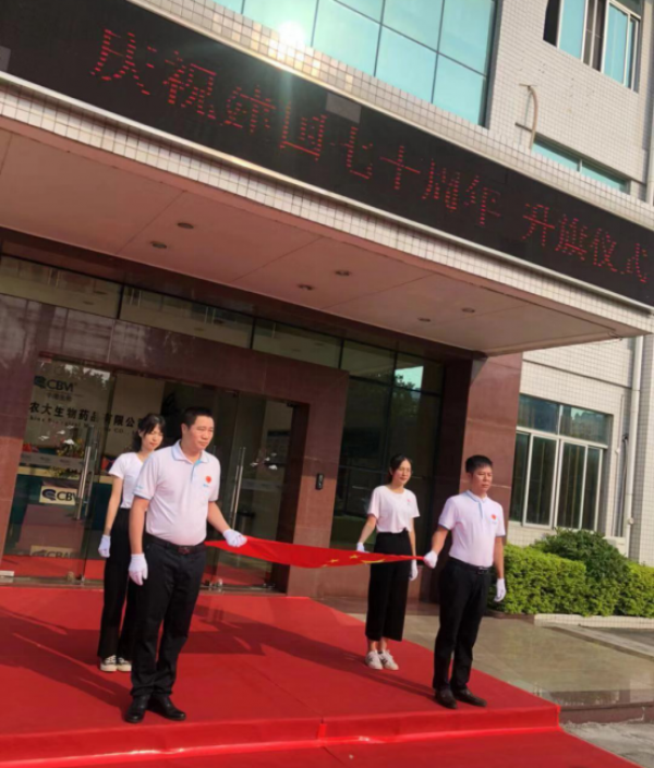 在新中國(guó)成立70周年之際,為了表達(dá)對(duì)偉大祖國(guó)的無比崇敬和熱愛之情,2019年9月29日上午,廣州市華南農(nóng)大生物藥品有限公司(以下簡(jiǎn)稱華南生物)舉行了莊嚴(yán)神圣的“迎國(guó)慶、升國(guó)旗”儀式。
