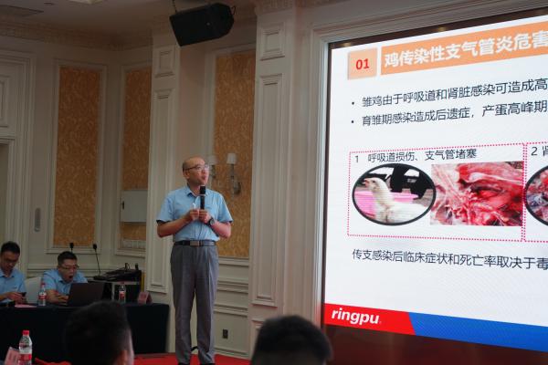 瑞普生物產(chǎn)品線副總裁尤永君做“家禽常見疫病的流行動態(tài)及防控策略”主題報(bào)告。尤總對當(dāng)前危害家禽業(yè)比較重大的疾病如傳染性支氣管炎、傳染性鼻炎、傳染性貧血、支原體、禽流感等進(jìn)行了詳細(xì)的介紹,并有針對性的提出了防控建議,對大家科學(xué)養(yǎng)殖提供了參考。