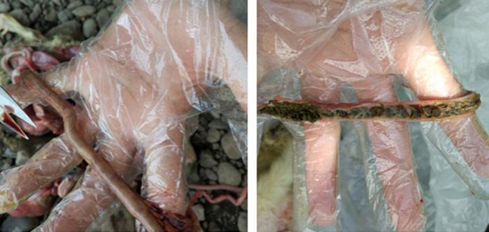 GPV、MDPV感染鵝、番鴨之后,基本臨床表現(xiàn)無太大差異,都會出現(xiàn)呼吸道癥狀(氣喘)、胰腺出血或壞死、腹瀉、卡他性纖維素性腸炎導(dǎo)致栓塞呈“臘腸樣”病變。主要危害7-21日齡雛鴨鵝,發(fā)病越早死亡越嚴(yán)重。近年來30日齡以上甚至某些200日齡以上種鵝群體也有發(fā)病的報(bào)道。