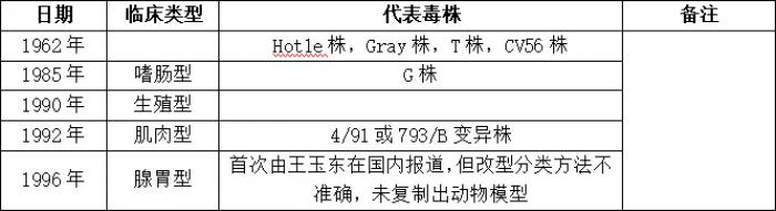 雞傳染性支氣管炎是一種廣泛存在的對(duì)家禽業(yè)造成巨大經(jīng)濟(jì)影響的家禽疾病。不斷出現(xiàn)的新的IBV基因型及不同基因型之間缺少交叉保護(hù)已經(jīng)成為防控IBV的重要挑戰(zhàn)。IBV致病型(臨床型)與IBV毒株血清型/基因型之間并無必然的聯(lián)系,不同血清型或基因型毒株可能屬于相同致病型。同時(shí),屬于同一血清型或基因型的IBV毒株可能屬于不同致病型。現(xiàn)就雞傳染性支氣管炎病毒臨床分型和代表毒株說明如下: