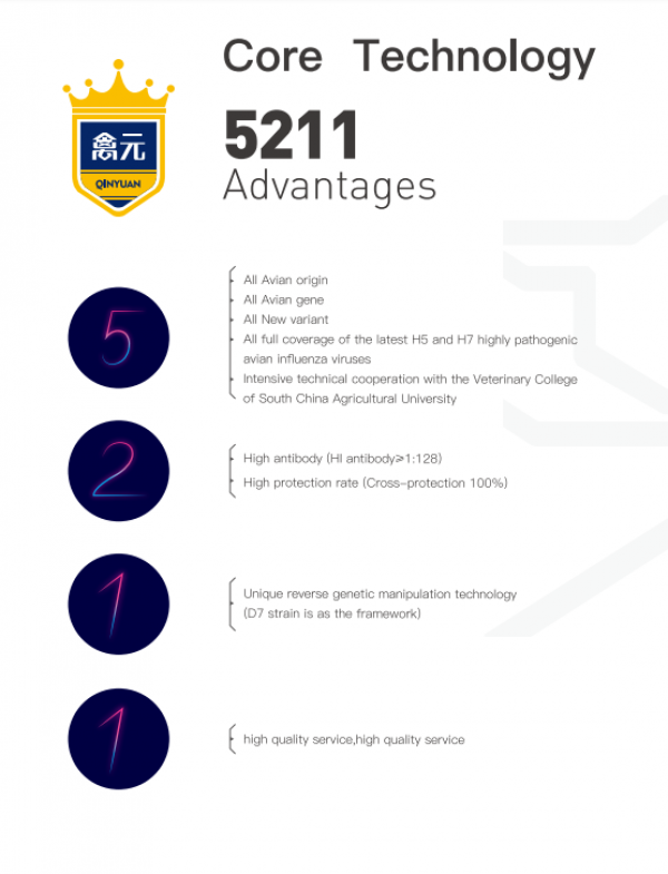 [Function and Application] It is used to prevent avian influenza caused by H5 subtype Clade 2.3.2.2.1d,Clade 2.3.4.4d and H7 subtype avian influenza virus.