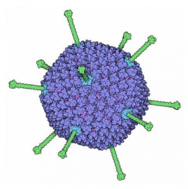 腺病毒是一個大家庭。腺病毒科含有多個屬,可以感染哺乳動物、禽類、魚、青蛙等多種生物。腺病毒為雙鏈DNA病毒,沒有囊膜,外層為由1600多個分子組成的衣殼,血清型眾多,耐酸、耐低溫、耐有機溶劑。六鄰體上面插著纖維尾絲(主要保護性抗原),讓病毒形似通訊衛(wèi)星。
